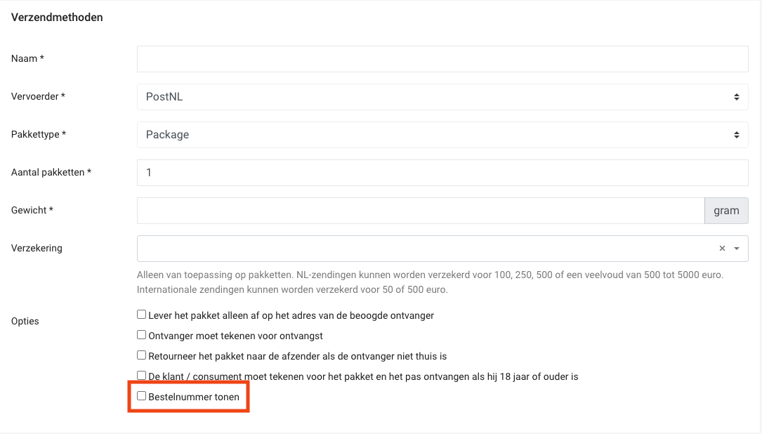 De optie ‘Bestelnummer tonen’ is toegevoegd aan de verzendmethode instellingen voor de vervoerder MyParcel. Door deze optie aan te vinken, worden de ordernummers op de verzendlabels van MyParcel getoond.